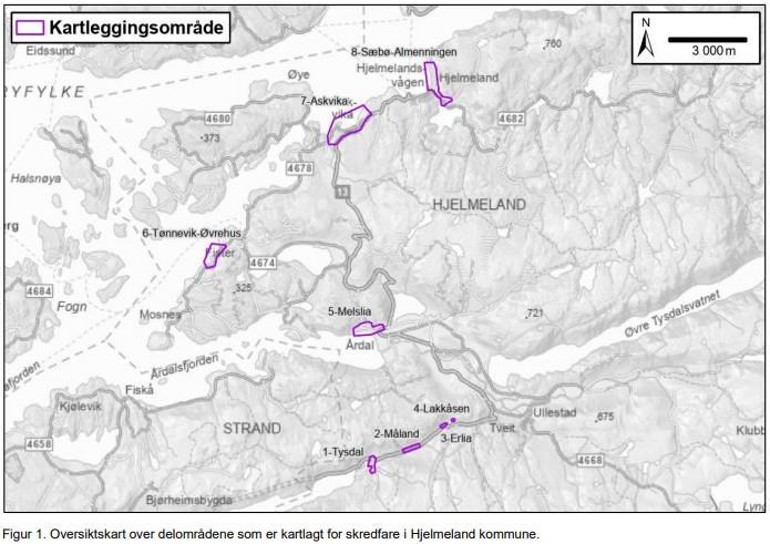 NVE har fått utført ei skredfarekartlegging for åtte utvalde område i Hjelmeland kommune. Det føreligg nå ein rapport med oversikt over faresoner for skred i bratt terreng. Som ledd i kvalitetssikring av rapporten blir denne nå lagt ut til høyring.