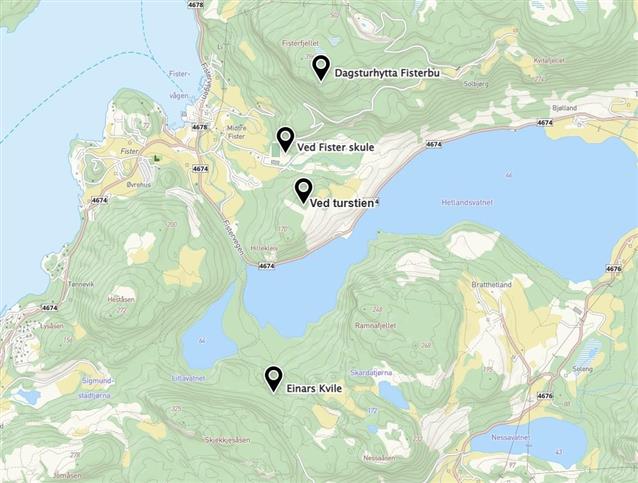 Her er det bålplass, bord og benker. Turen kan du gå med utgangspunkt i stemmen på Fister. Her kan du velje fleire vegar til målet; rundt Litlavatn eller langs Hetlandsvatnet. Turen er lett og passar for barn.